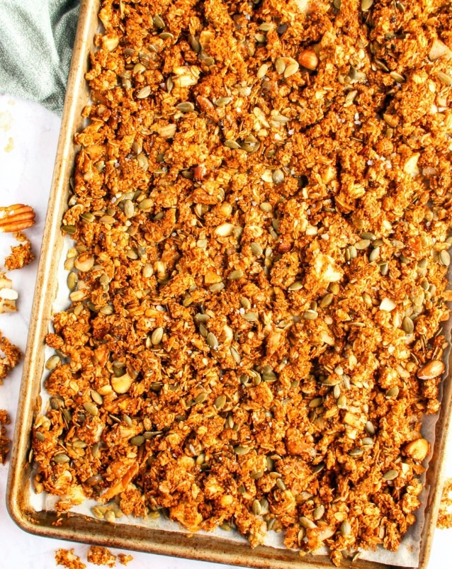 - Cool & Crumble: Remove from the oven and let it cool completely on the pan (at least 30 minutes). It will not be crunchy until it is fully cooled. Once cold, break the rectangle into your desired cluster sizes.
