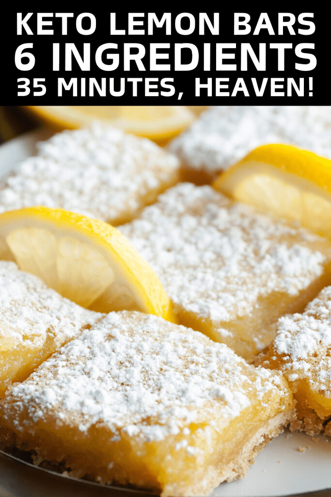 Indulge in the zesty delight of Keto Lemon Bars, featuring a crumbly almond flour shortbread crust beneath a lusciously tangy lemon filling. This creamy, lemon-packed dessert is simple to make with just 6 key ingredients. A perfect treat for those following a keto diet!