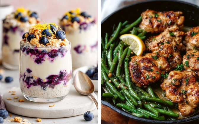 - Dinner: Zesty Garlic Butter Chicken and Skillet Beans – One-pan meal. (466 kcal | 44g Protein | 26g Fat | 12g Net Carbs)