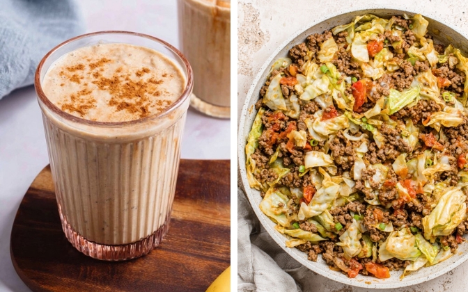 - Dinner: One-Pan Savory Taco Cabbage – High volume to help you feel stuffed. (477 kcal | 36g Protein | 31g Fat | 10g Net Carbs)