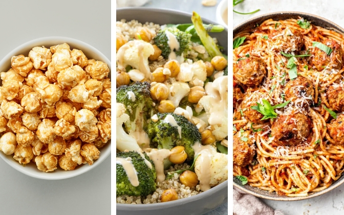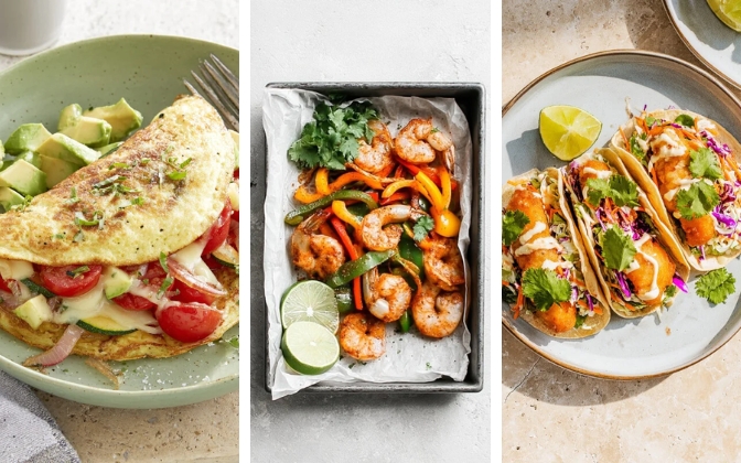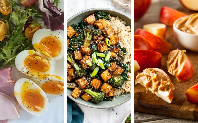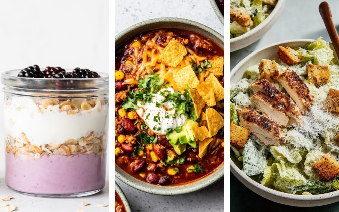 - Protein: Chicken, fish, tofu, tempeh, beans, lentils, eggs, Greek yogurt… take your pick!