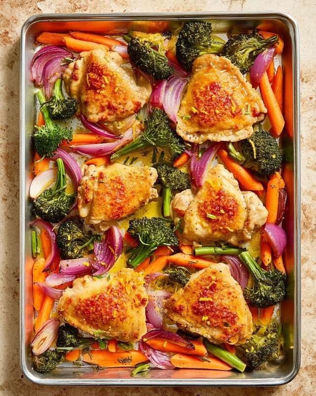 The final touch is the fresh lemon vinaigrette. You drizzle this over the entire pan after it comes out of the oven. It’s that last-minute splash of brightness that wakes everything up and ties the chicken and the roasted vegetables together.